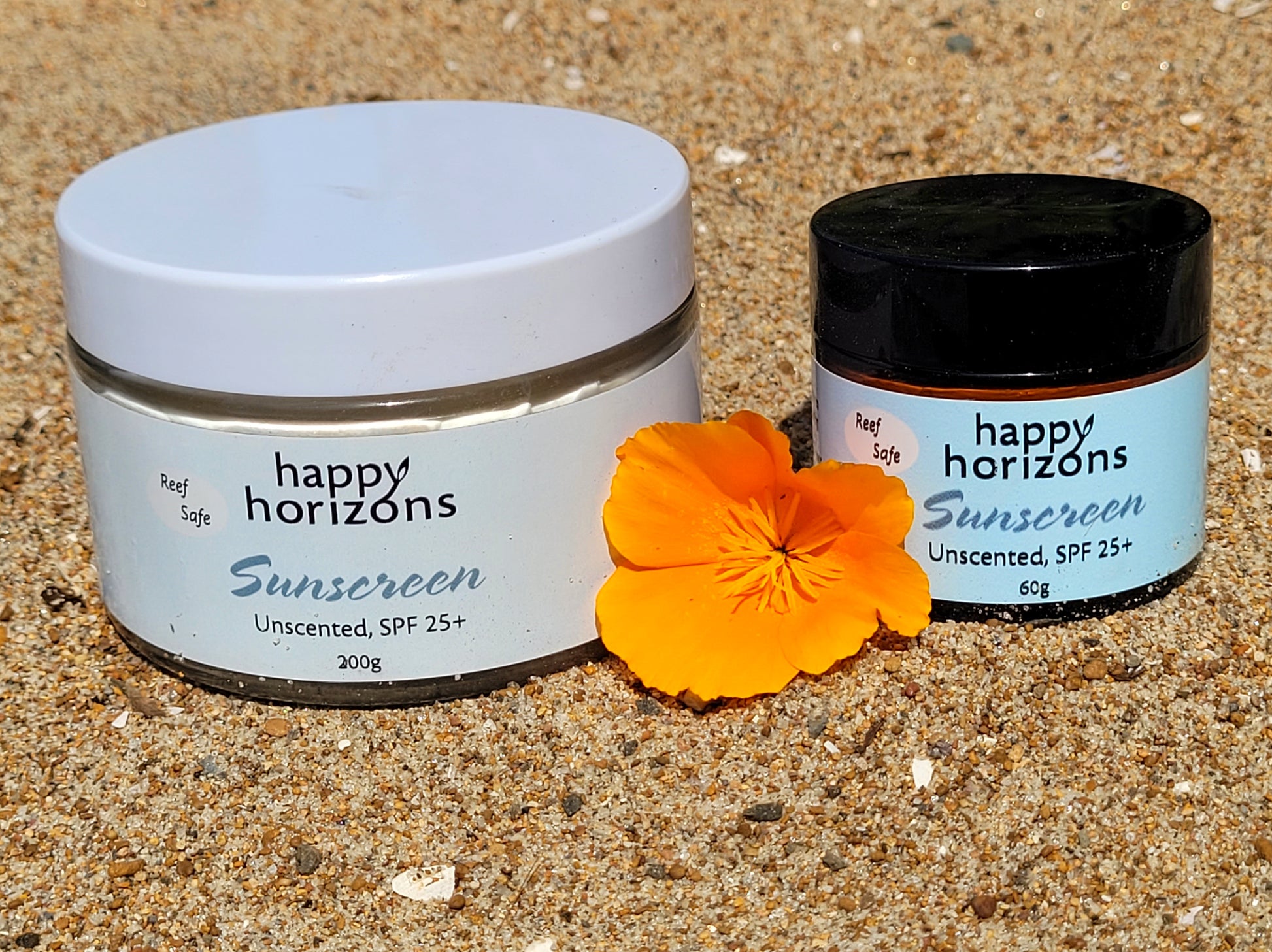 Happy Horizons sunsreen is a pure product with no chemicals in it. It has been my favourite product for many years. Very highly recommended. Thank you Pat for producing a safe alternative to commercial options.
